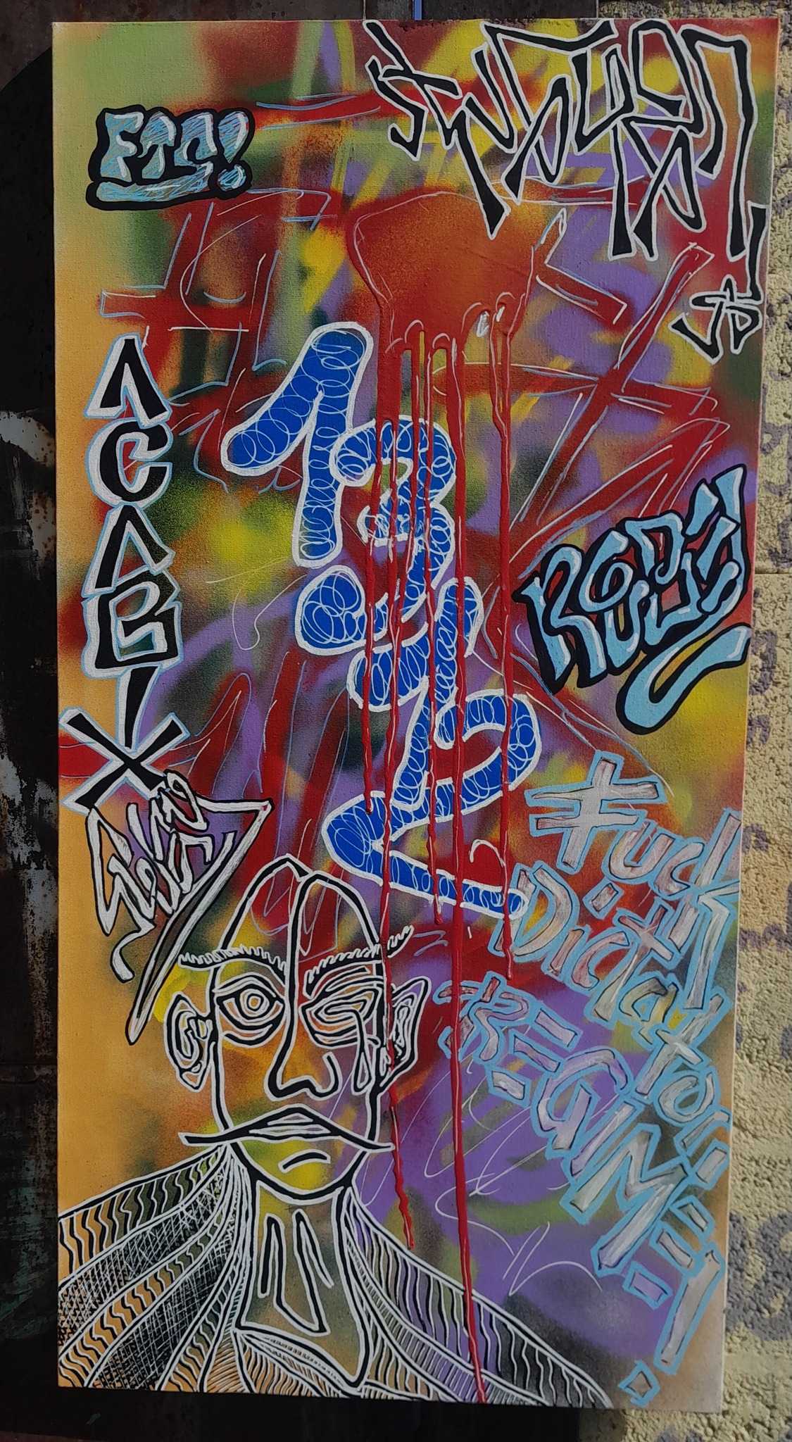 #canvasart #artforsale #streetartist #protestart #rebel #fts #fdr #angry #acab #sprayoncanvas #ტილოზეხატვა #ტაბუ